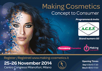 Making Cosmetics together with Formulating Cosmetics, represents a unique opportunity to bring your knowledge and information “up-to-the-minute”, to have direct contact with leading experts from across the innovation chain and supply including leading University involved in cosmetic